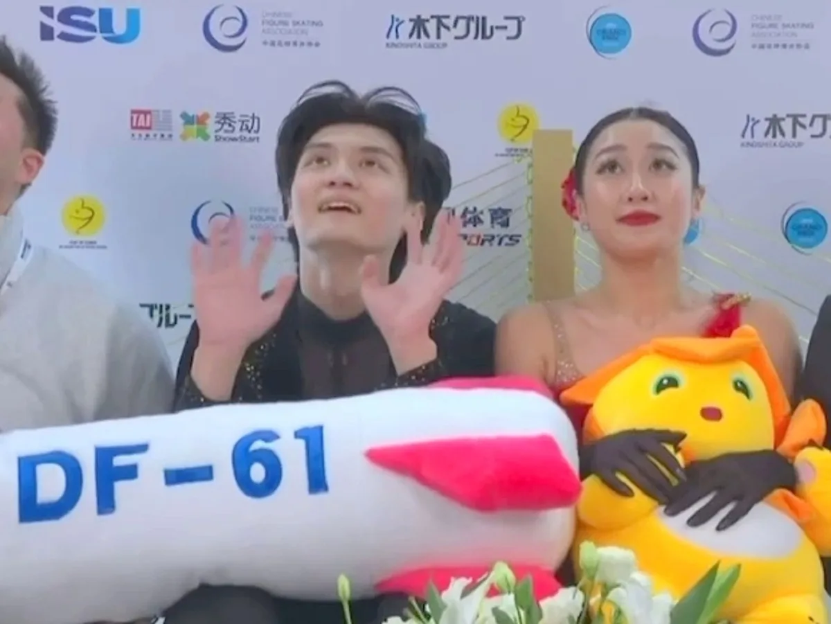Китайские фигуристы Жэнь Цзюньфэй и Син Цзянинво оказались под следствием после своего выступления на этапе Гран-при в Чунцине. После завершения номера в зоне kiss and cry спортсмены продемонстрировали мягкую игрушку, выполненную в форме межконтинентальной баллистической ракеты DF-61.