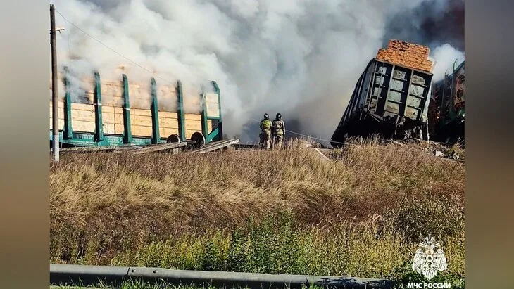 «Огонь от горящих цистерн с ГСМ угрожает вагонам с пиломатериалами. Пожарные обрызгивают их водой, чтобы предотвратить распространение огня», – рассказал источник агентства.